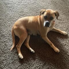 Eine entspannte Hündin, außer es gibt Fressen. Sie genießt es Einzelprinzessin zu sein, und fängt an, alles neugierig zu entdecken, was sie bisher alles nicht kennengelernt hat.