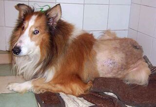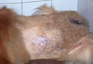 Linus´ Haut ist voller Ekzeme. Das Fell muss ihm teilweise geschoren werden.