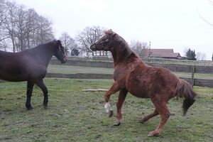 Mittlerweile, drei Monate später, habe ich meinen Traber in alter Form wieder und ein Pony, was mich immer grimmig anschaut. "Pepe le pew", so heißt er jetzt.
