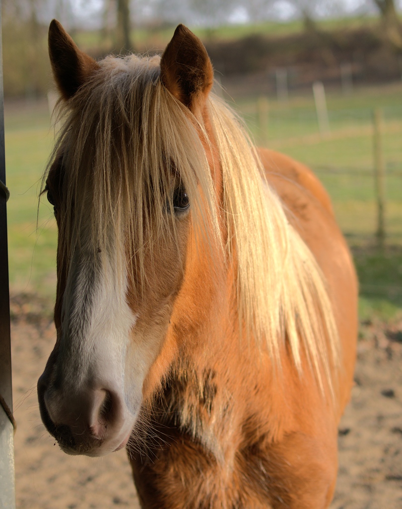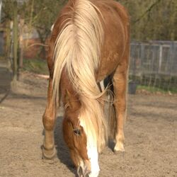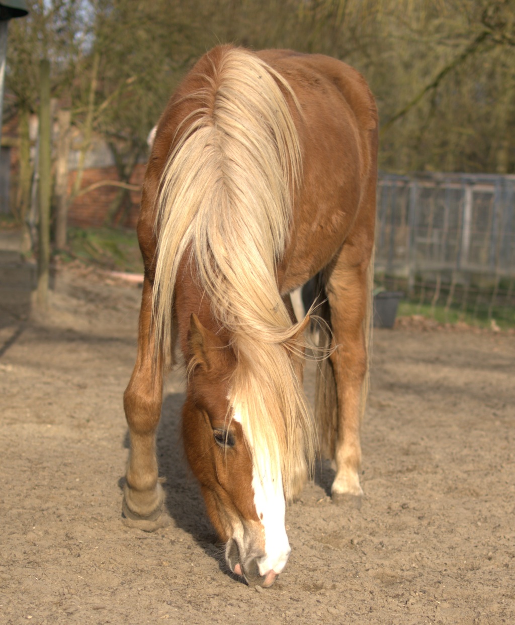 Diese zweijährige Stute ist freundlich und unkompliziert im Umgang, mit etwas Ablenkung absolviert sie auch den Besuch beim Schmied ohne Probleme. Den anderen Pferden begegnet sie freundlich und entspannt, einen ersten Spaziergang (in unserem reizarmen Umfeld) hat sie auch gut mitgemacht.