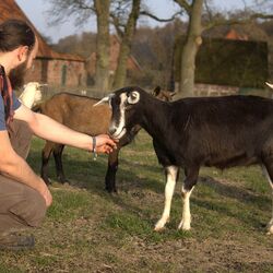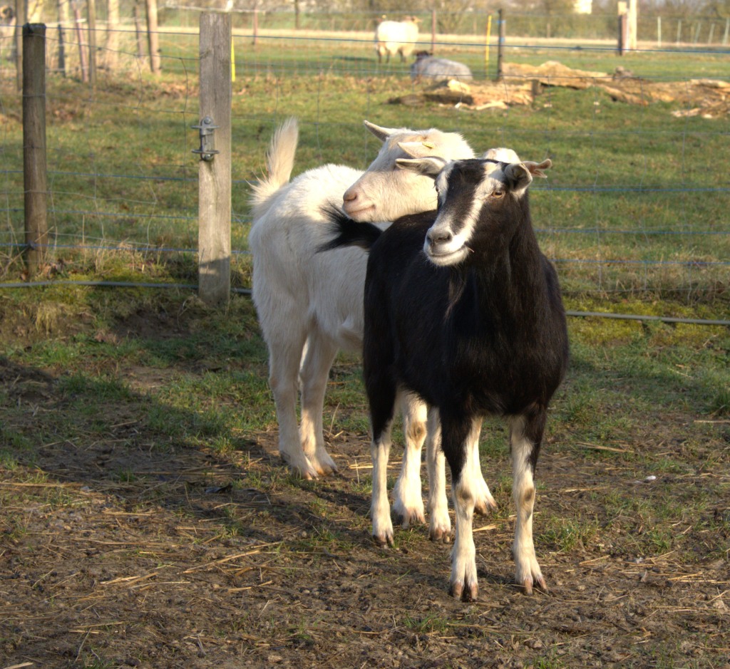 Frieda und Flocke, Jahrgang 2023 und 2022, suchen gemeinsam ein neues Zuhause. Die beiden Ziegenmädels sind menschenbezogen und ausgesprochen freundlich. Für sie wünschen wir uns ein Zuhause mit Familienanschluss. Auch in der Tiergestützten Intervention können wir uns die beiden coolen Socken sehr gut vorstellen.