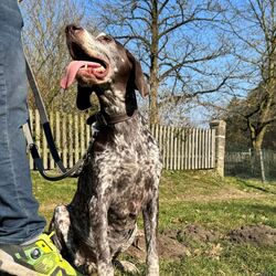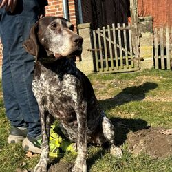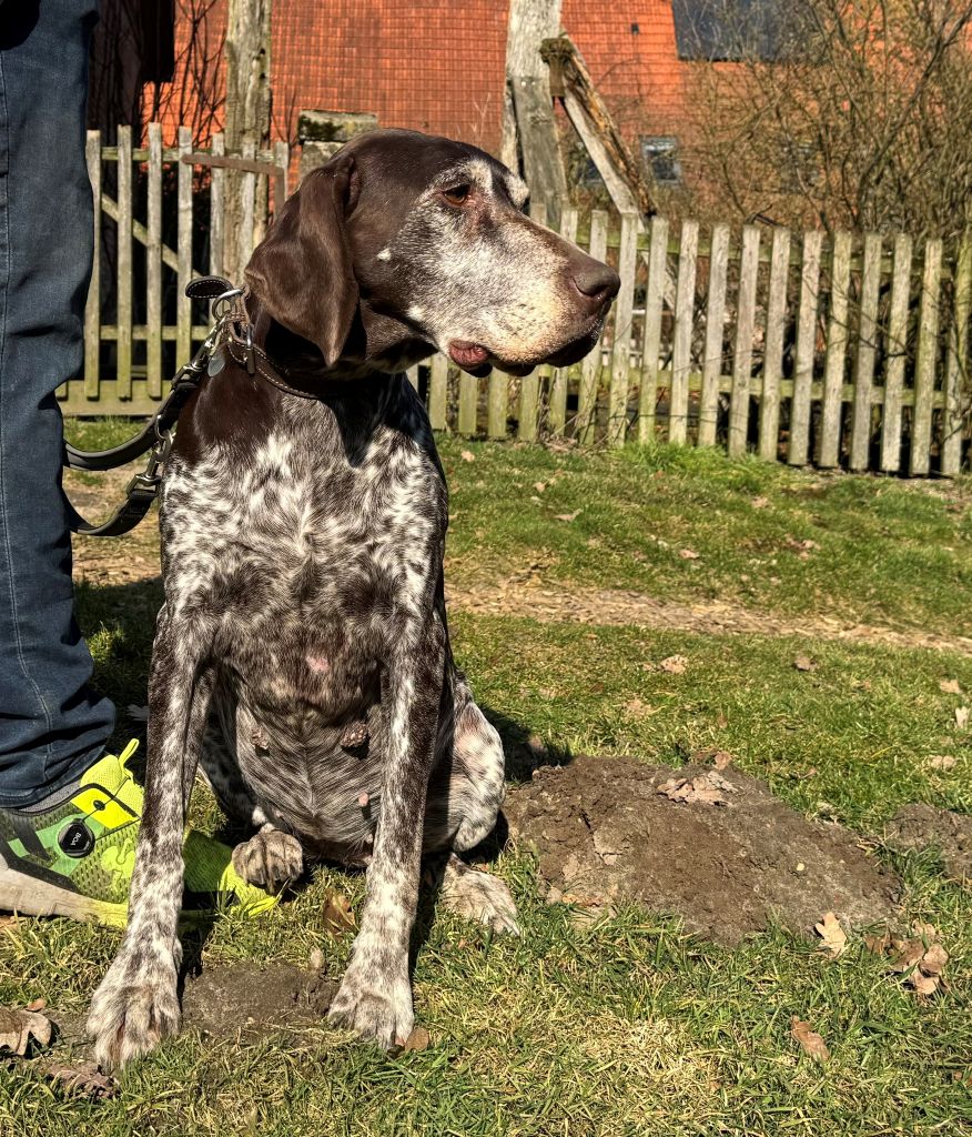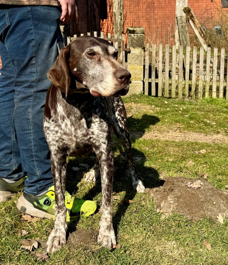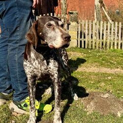 Tante Emma und Bunny sind Jagdhunde, Dt. Kurzhaar. Tante Emma ist die ältere von beiden, sie ist ca. 2018 geboren, Bunny ungefähr im Jahr 2023. Die beiden sind supermenschenbezogen und freundlich, auch mit anderen Hunden sind sie toll. Andere Tierarten sind für sie allerdings jagdbares Wild, sie werden also immer an der Leine geführt werden müssen. Die beiden haben bislang leider nur im Zwinger gelebt und müssen die gängigen Haushaltsregeln noch lernen, hier ist also ein wenig Geduld gefragt. Bunny ist alterentsprechend lebhafter als Tante Emma, beide sind ausgesprochen lebensfroh und abenteuerlustig. Wir stellen sie gemeinsam vor, weil sie sich recht ähnlich sind und auch gemeinsam zu uns gekommen sind, vermittelt werden sie einzeln. Sie sind miteinander ebenso freundlich wie mit allen andern Hunden und hängen nicht besonders aneinander.