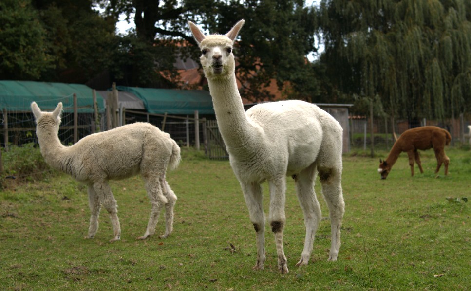 Brösel ist ein Alpakahengst, vermutlich ist er noch nicht ganz ausgewachsen.