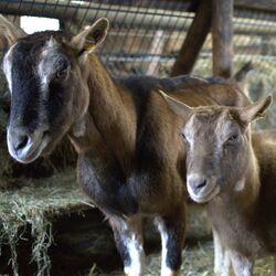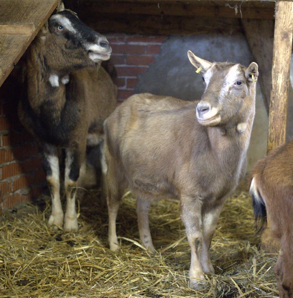 Zwei zahme zuckersüße Ziegen möchten Weihnachten mit ihren neuen Menschen um den Tannenbaum tanzen - und ab und an mal im Vorbeitanzen einen kleinen Tannenzweig weghapsen. Micky und Minnie sind Geschwister, sie sind ungefähr 2017 geboren und suchen gemeinsam ein neues Zuhause. Micky ist ein echter Riese, Minnie eine normalgroße Milchziege, vermutlich sind sie Toggenburger Mischlinge. Die Beiden sind sehr entspannt, 100% freundlich und zahm. Hier in der Ziegengruppe zeigen sie sich eher als Beckenrandschwimmer. Wenn die Jungspunte sich wichtig tun, treten sie einfach einen Schritt zur Seite, obwohl sie teilweise doppelt so groß sind. Sie würden auch mit Halsband und Leine mit ihren Menschen Gassi gehen, z.B. auf Naschpartie durch Wald und Feld...