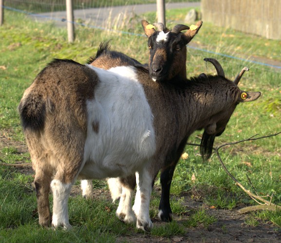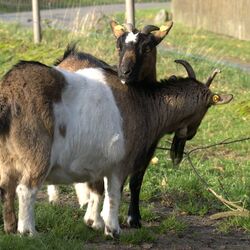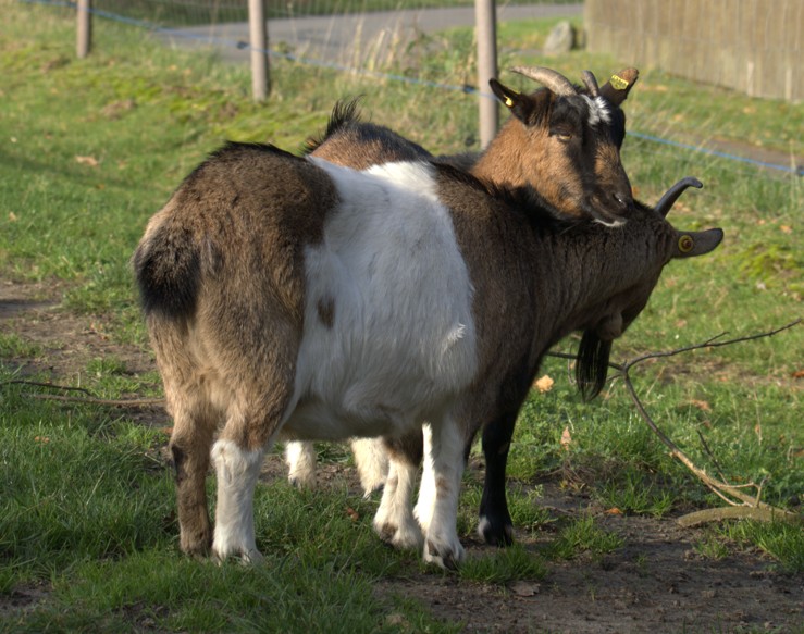 Die beiden Zwergziegen Paula und Lotti sind im Jahr 2016 geboren. Sie haben von klein auf quasi als Familienmitglieder bei ihren Menschen gelebt und wurden mit sehr schwerem Herzen bei uns abgegeben, weil es einfach keinen anderen Ausweg gab. Ihren gewohnten Lebensstil würden die beiden Meckertanten natürlich gerne beibehalten. Sie sind selbstverständlich auch herdenkompatibel, mit den Schafen sind sie auch verträglich, die Schweine grüßen sie freundlich im Vorbeigehen und den Pferden lassen sie respektvoll den Vortritt. Wichtig sind ihnen aber eben Menschen. Sie können sich ein Leben als Familienziegen vorstellen, einen Nebenjob in der tiergestützten Intervention würden sie aber auch nicht ausschlagen.