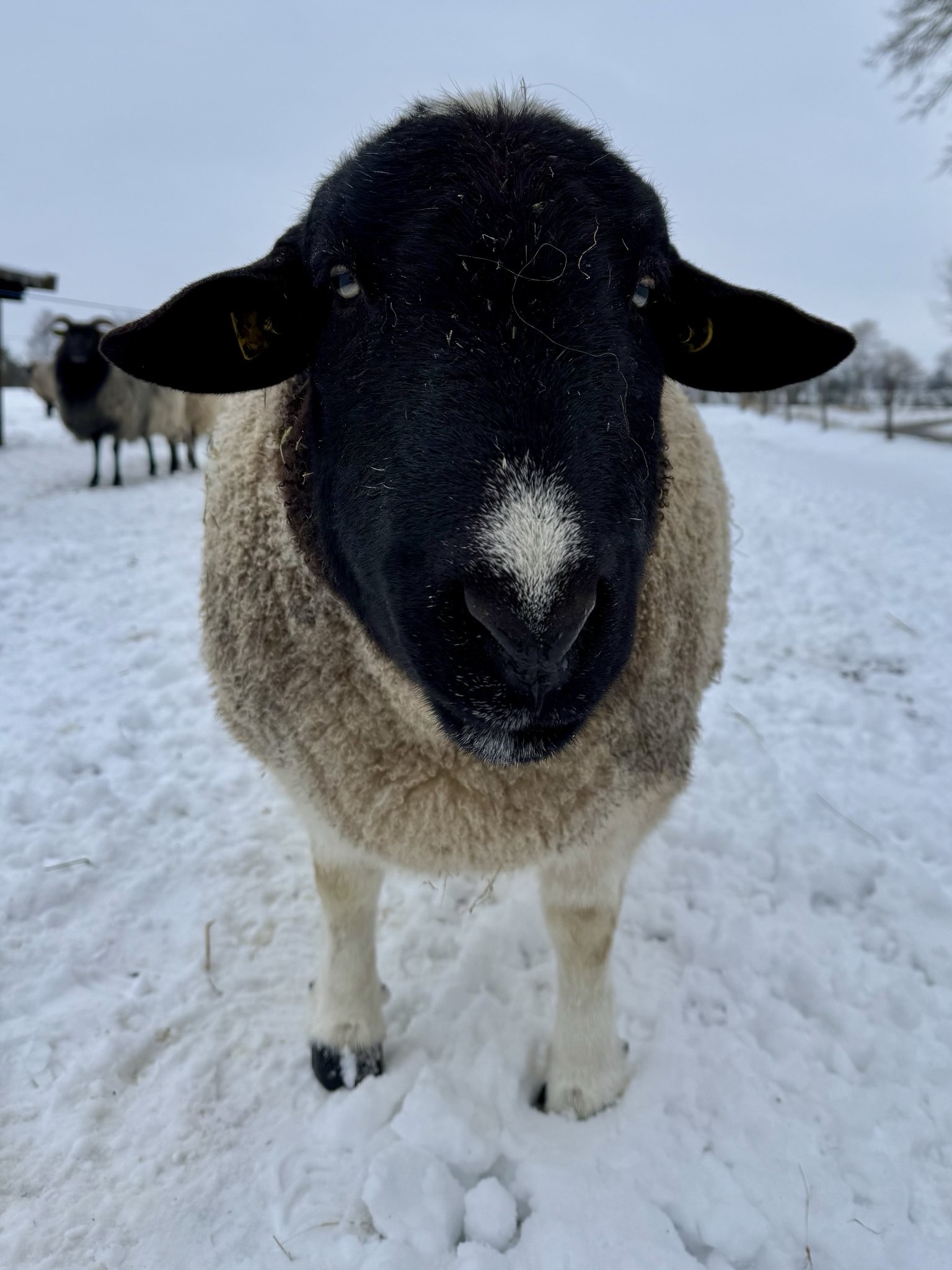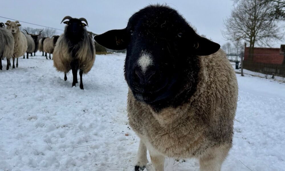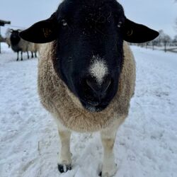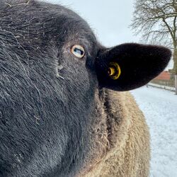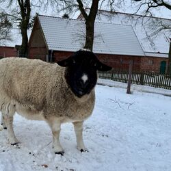 Rudi ist ein Dörperschaf. Der kastrierte 7jährige Bock hat als Therapeut gearbeitet und ist dementsprechend ausgeglichen, freundlich und so zahm, dass er beim Fotografieren ständig zu nah gekommen ist… Mit den anderen Schafen war er vom ersten Tag an tiefenentspannt, auch Pferdegesellschaft ist er gewohnt. Rudi ist leinenführig. Er sucht eine Festanstellung als Therapie- oder Freizeitschaf.