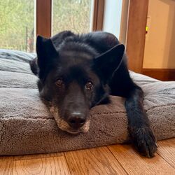 Und heute ging alles ganz schnell. Morgens hat Frida nicht gut gefressen, mittags hat sie angefangen schwerer zu atmen und konnte nicht mehr aufstehen. Es war offensichtlich, Fridas Kräfte waren zu Ende. Wir hatten anderthalb Stunden Zeit um Abschied zu nehmen, bis unsere Tierärztin gekommen ist und haben abwechselnd bei ihr gesessen und Frida, unsere unnahbare Frida, die eigentlich nur Hund konnte, und der es immer genug Nähe war, wenn jemand im selben Raum war, Frida, die sich nur in ganz ruhigen Momenten mal an ein Bein geschmiegt hat und sich nur die Wangen hat kraulen lassen, wenn alles stimmte… die Stimmung, die Umgebung, die Hand im richtigen Tempo und im richtigen Winkel ihrem Gesicht genähert wurde und die sich dann, nur dann mit ihrem Gesicht in die Hand geschmiegt und das Kraulen genossen hat. Frida, die durch ihr so selten geschenktes Vertrauen manchmal, nur manchmal eine oder einen von uns zur Königin oder zum König gekrönt hat. Heute hat sie uns verlassen, unsere große Lehrmeisterin. Anderthalb Stunden lang hat sie ihren Kopf in alle unsere Hände geschmiegt – alle, die heute im Dienst waren – hat alle Barrikaden fallen lassen und Nähe und Liebe in sich aufgesaugt. In meinen Armen hat sie ihren letzten leisen Atemzug getan. Zweiundeinviertel Jahr haben Frida und ich zusammen gelebt. Aufgrund ihrer schlechten Prognose haben wir vom ersten Tag an nicht Tisch und Bett aber doch Küche und Stube geteilt. Was für ein Geschenk, dass du so lange bei uns verweilen durftest.