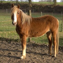 Diese zweijährige Stute ist freundlich und unkompliziert im Umgang, mit etwas Ablenkung absolviert sie auch den Besuch beim Schmied ohne Probleme. Den anderen Pferden begegnet sie freundlich und entspannt, einen ersten Spaziergang (in unserem reizarmen Umfeld) hat sie auch gut mitgemacht.