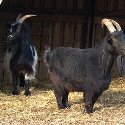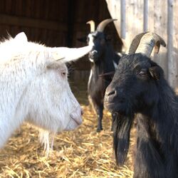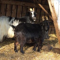 Bugs Bunny und Olaf sind Zwergziegen. Sie wurden 2018 und 2012 geboren und leben schon lange in trauter Zweisamkeit. In ihr nächstes Zuhause möchten die beiden deshalb auch gerne gemeinsam ziehen. Die beiden kastrierten Böcke sind menschenfreundlich, folgen uns Menschen aber nicht auf Schritt und Tritt, sondern sind miteinander zufrieden. Dabei geht Olaf sogar recht gut an der Leine, was im Alltag einiges erleichtert.