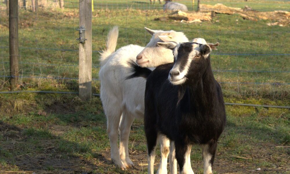 Frieda und Flocke, Jahrgang 2023 und 2022, suchen gemeinsam ein neues Zuhause. Die beiden Ziegenmädels sind menschenbezogen und ausgesprochen freundlich. Für sie wünschen wir uns ein Zuhause mit Familienanschluss. Auch in der Tiergestützten Intervention können wir uns die beiden coolen Socken sehr gut vorstellen.