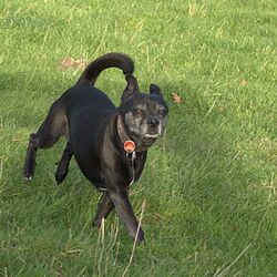 Dieser süße Vierbeiner heißt Karl. Er ist ein Mops-Mix und 7Jahre alt.