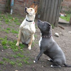 Die lustige Hündin ist generell menschenfreundlich, braucht aber ein Mü um Vertrauen zu fassen. Klecks liebt es mit Chika zu toben, ihre neuen Menschen sollten also auch aktiv sein und gerne mit ihr durch die Landschaft streifen. Ein Zweithund wäre für Klecks toll. Sie liebt Chika sehr, aber wir schätzen die Chancen die beiden gemeinsam zu vermitteln leider als sehr gering ein. Und bevor sie ewig in der Warteschleife festhängen, ist es sicher sinnvoller für jede einzeln nach einem tollen Zuhause zu suchen. Klecks kennt ein paar Kommandos und da sie sehr futteraffin ist, lernt sie sicher auch schnell noch neue dazu. Mit einem Zweithund kann sie sicher ein paar Stündchen alleine bleiben ohne Dönekes zu machen.