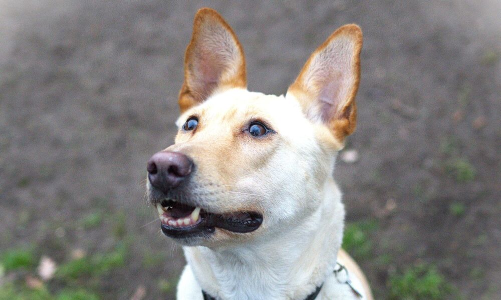 Klecks ist eine bulgarische Straßenhündin, vermutlich eine Kreuzung aus Schäferhund und Känguru... geboren im Jahr 2020. Eine Narbe auf der Stirn verleiht ihr einen leicht irren Gesichtsausdruck, so ist sie aber keineswegs.