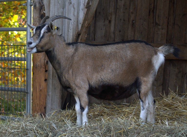 Lolita ist ungefähr 2022/23 geboren. Sie ist eine handliche Mittelklasse-Ziege, vielleicht eine Kreuzung aus Toggenburger und Zwergziege. Die schöne ist nicht direkt scheu, aber sie ist eine Bedenkenträgerin. Nach alter Ziegensitte wird sie aber sicher schnell bereit sein Bedenken gegen Kekse zu tauschen...