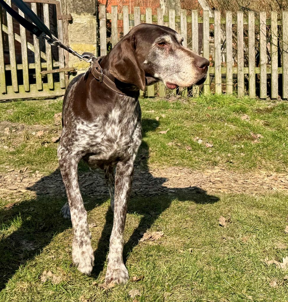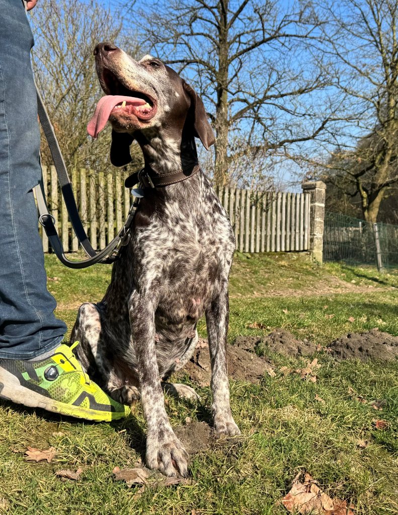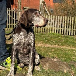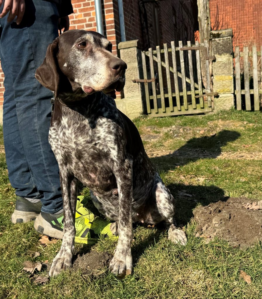 Tante Emma und Bunny sind Jagdhunde, Dt. Kurzhaar. Tante Emma ist die ältere von beiden, sie ist ca. 2018 geboren, Bunny ungefähr im Jahr 2023. Die beiden sind supermenschenbezogen und freundlich, auch mit anderen Hunden sind sie toll. Andere Tierarten sind für sie allerdings jagdbares Wild, sie werden also immer an der Leine geführt werden müssen. Die beiden haben bislang leider nur im Zwinger gelebt und müssen die gängigen Haushaltsregeln noch lernen, hier ist also ein wenig Geduld gefragt. Bunny ist alterentsprechend lebhafter als Tante Emma, beide sind ausgesprochen lebensfroh und abenteuerlustig. Wir stellen sie gemeinsam vor, weil sie sich recht ähnlich sind und auch gemeinsam zu uns gekommen sind, vermittelt werden sie einzeln. Sie sind miteinander ebenso freundlich wie mit allen andern Hunden und hängen nicht besonders aneinander.