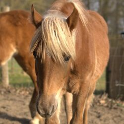 Dieses Stutchen befindet sich im Alter von 1,5 Jahren. Sie ist menschenbezogen und neugierig. Der kleine Frechdachs scheint vor nichts Angst zu haben. Ihren zukünftigen Haltern kommt die Aufgabe zu, ihr die nötigen Umgangsformen beizubringen und ihrem Übermut gelassen Paroli bieten. Dann wird sie sicher ein Pferd, mit dem man durch dick und dünn gehen kann. Den anderen Pferden begegnet Nikita freundlich.